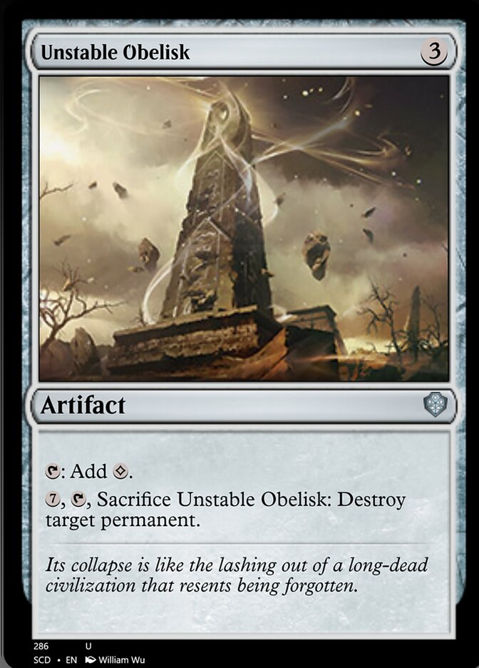 7, T, Sacrifice Unstable Obelisk: Destory target permanent.